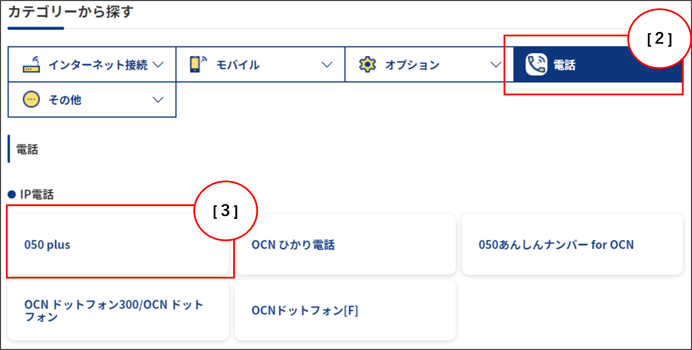 - お客さまサポート画面からサービス名から探すをクリックする。