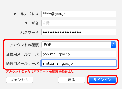 メールソフトでの送受信(Mac OS X/POP)