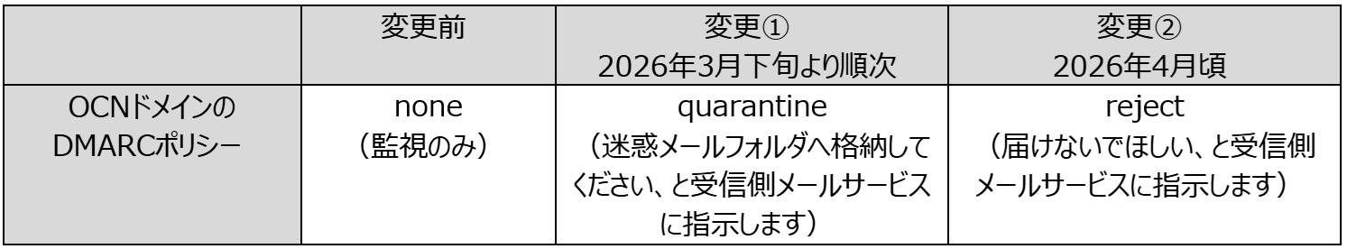 OCNメールにおけるセキュリティ強化(DMARC送信ポリシーの変更)のお知らせ