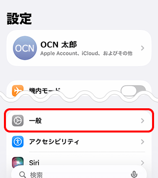 2. [設定]画面が表示されます。[一般]をタップします。