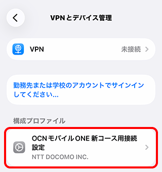 [OCNモバイルONE 新コース用接続設定]または[OCN(Cellular)]をタップします。