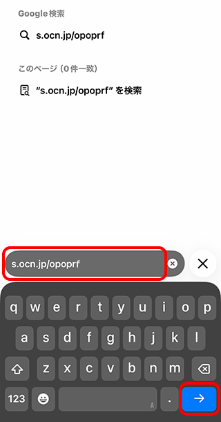 9. アドレスバーに s.ocn.jp/opoprf と入力し、[ go]キーをタップします。