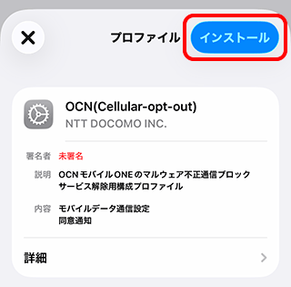 OCN モバイル ONE - iOS:マルウェア不正通信ブロックサービスの適用を解除したい